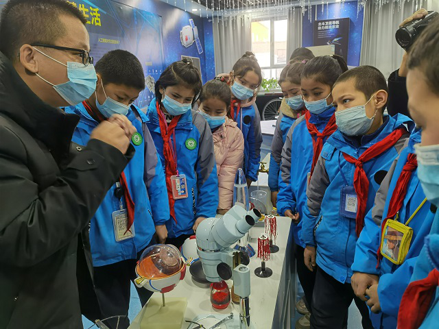 輪臺縣第九小學學生在陽霞鎮哈爾墩村科普館參加“科技之冬”青少年科技教育主題科普活動