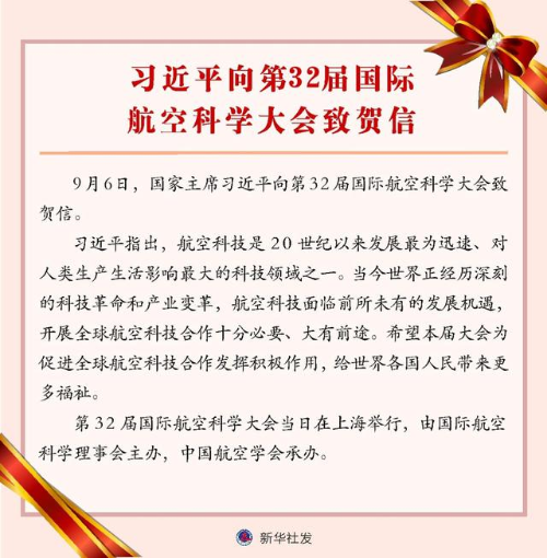 2.習(xí)近平向第32屆國際航空科學(xué)大會致賀信