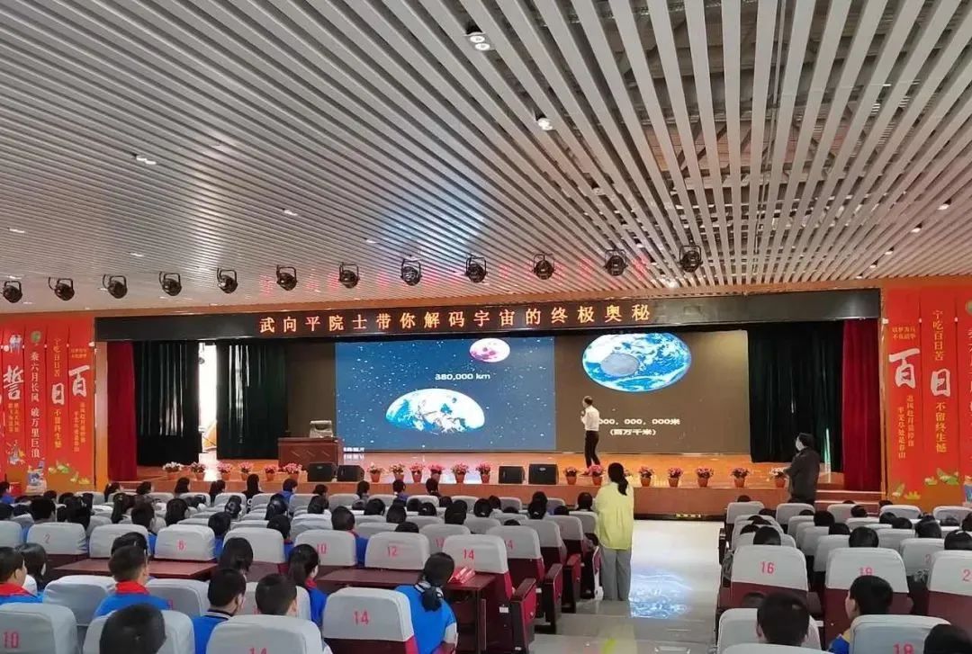 武向平院士憑借其深厚的學術造詣與豐富的科普經驗,用生動形象、通俗易懂的語言,深入淺出地講解了 “宇宙是什么、從哪里來、到哪里去,誰在決定宇宙的命運” 等一系列引人深思的問題。在講解過程中,武院士運用大量生動有趣的例子與高清震撼的圖片、視頻,向師生們演示了宇宙結構的形成和演化過程。從廣袤無垠的星系,到神秘莫測的黑洞、中子星等天體;從宇宙誕生之初的大爆炸理論,到未來宇宙的可能走向,每一個知識點都被武院士講述得妙趣橫生,牢牢吸引著臺下師生們的目光。大家全神貫注,沉浸在這場宇宙知識的盛宴中,親身感受著宇宙的浩瀚與神奇。