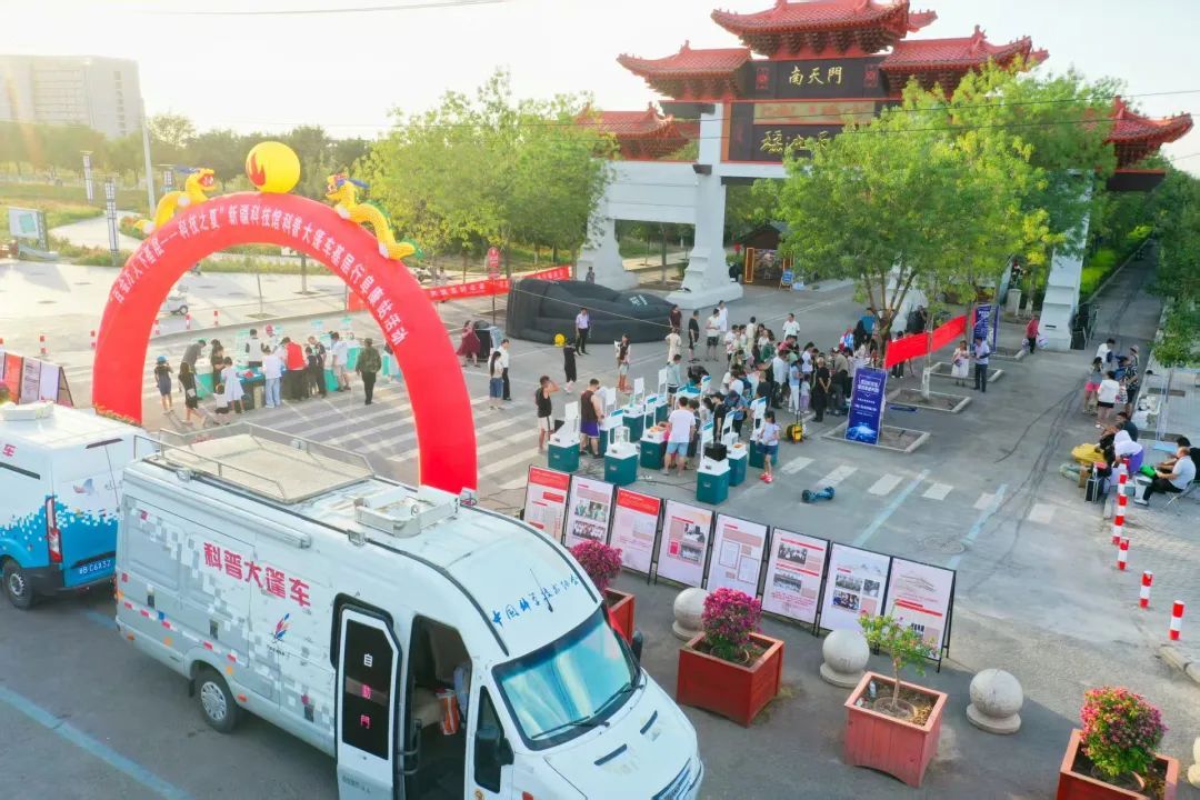 活動現(xiàn)場,科普大篷車搭載的聲光電力學(xué)互動展品、智能機器人及移動球幕影院等設(shè)備吸引了眾多市民駐足,好奇的孩子和感興趣的市民操作體驗,感受科技魅力。
